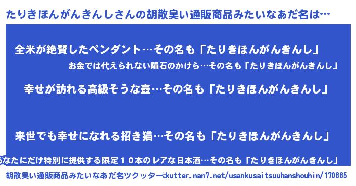 | 意味不明あだ名 | 『たりきほんがんきんしフォーエバー』 |