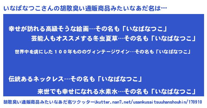| 意味不明あだ名 | 『住所不定無職いなばなつこ(10歳)』 |