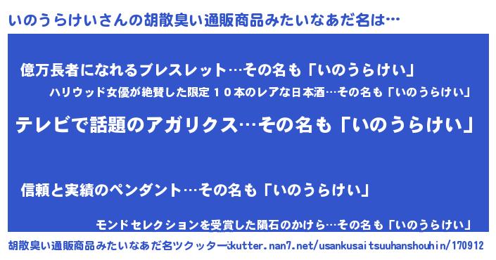 | 意味不明あだ名 | 『自称いのうらけい』 |