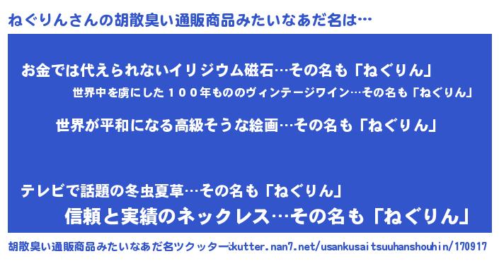 | 欧米人風あだ名 | 『ねぐりんクリステル』 |