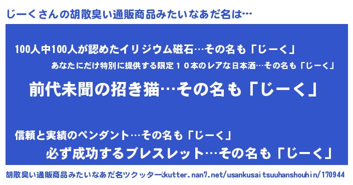 | ヘコむあだ名 | 『じーく(笑)』『じーもー』『じーお』 |