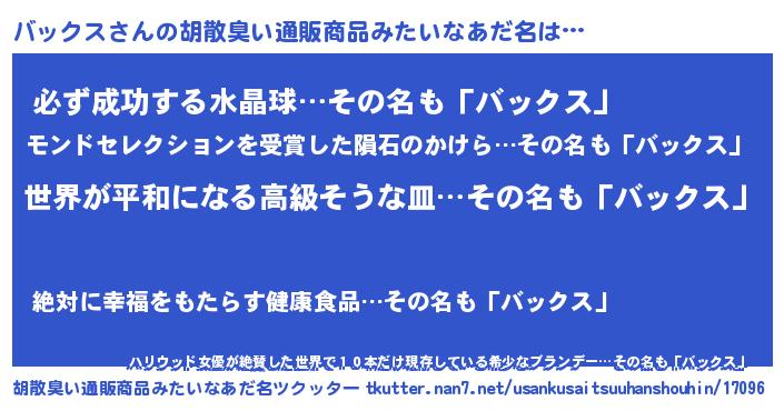 | 意味不明あだ名 | 『バックスフォーエバー』 |