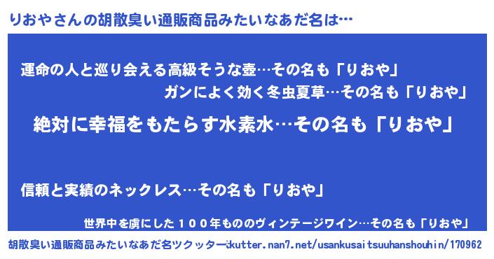 | ヘコむあだ名 | 『りおや(苦笑)』『酢こんぶ』 |