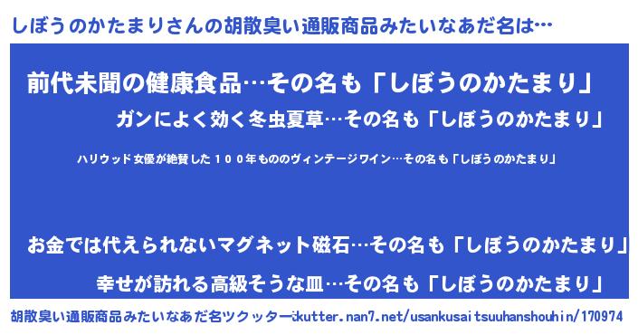 | 意味不明あだ名 | 『住所不定無職しぼうのかたまり(8歳)』 |