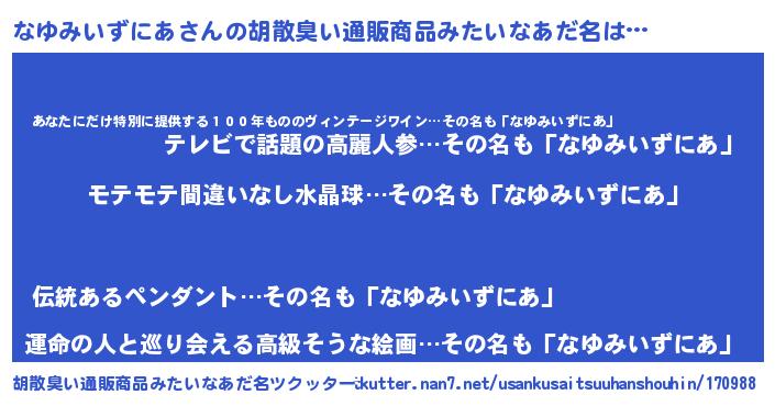 | ヘコむあだ名 | 『なゆにゅー』『なまこ酢』『なゆを』 |