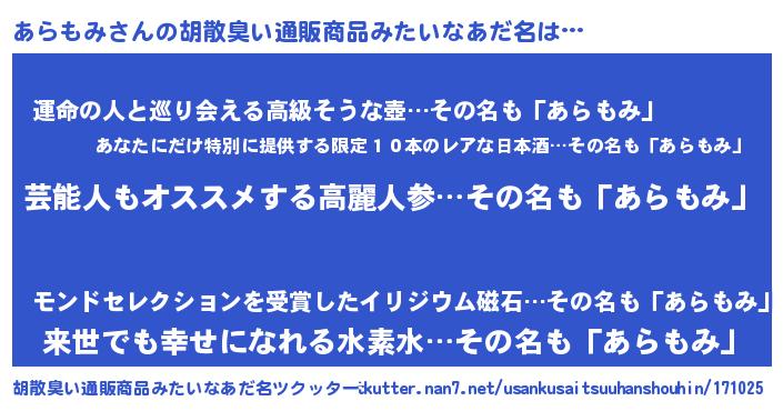 | 意味不明あだ名 | 『自称あらもみ』『あらもみフォーエバー』 |