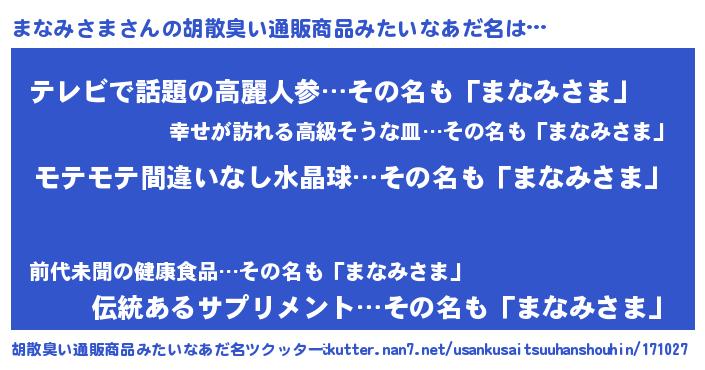 恥ずかしいあだ名 | 『プリティーまなみさま』『マナリンリン』 |