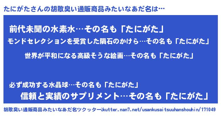 | ポケモン風あだ名 | 『タニガダネ』『タニゴンZ』 |