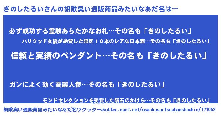 | 意味不明あだ名 | 『とにかく怪しいきのしたるい』 |