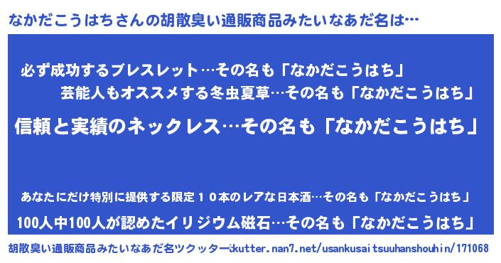 なかだこうはちさんの胡散臭い通販商品みたいなあだ名をツクッター!