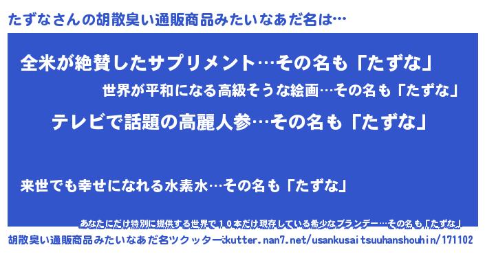 | ヘコむあだ名 | 『たずお』『酢こんぶ』『たずな(笑)』 |