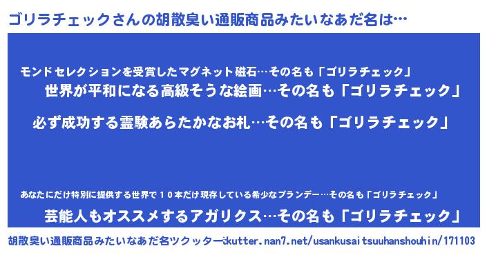 ゴリラチェックさんの胡散臭い通販商品みたいなあだ名をツクッター!