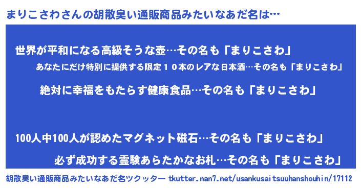 | ヘコむあだ名 | 『まりこさわ(爆)』『なまこ酢』 |