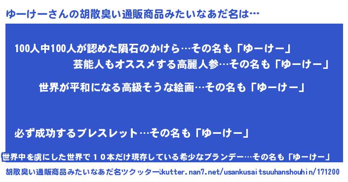 | 欧米人風あだ名 | 『ゆーけークリステル』 |