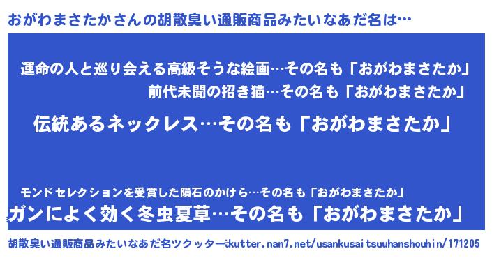 | 欧米人風あだ名 | 『アンジェラ・おがわまさたか』 |