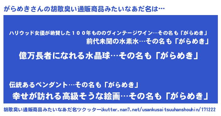 | ヘコむあだ名 | 『がらもー』『牛乳』『がらめき(爆)』 |