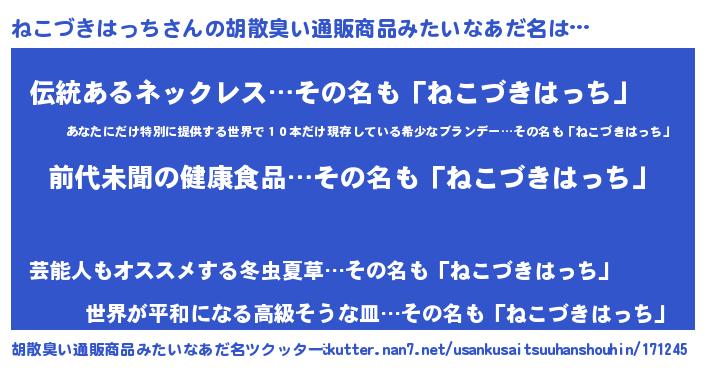 | 意味不明あだ名 | 『永久保存ねこづきはっち』 |