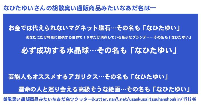 | 男性向けラノベタイトル風あだ名 | 『なひたゆいの憂鬱』 |