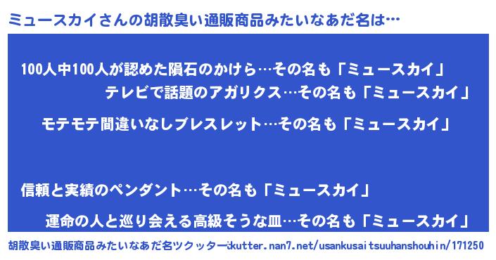 | 欧米人風あだ名 | 『マイケルミュースカイ』 |