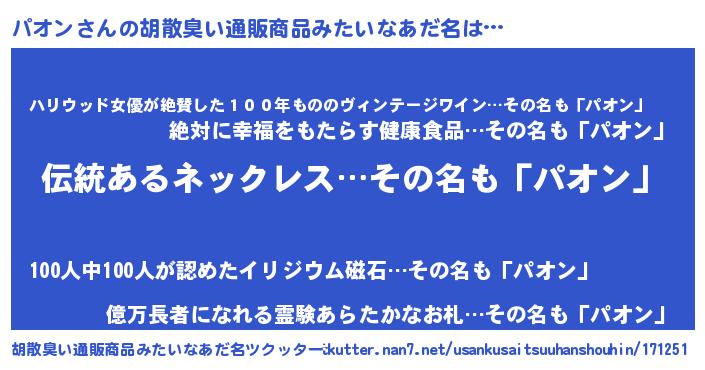 | 意味不明あだ名 | 『とにかく怪しいパオン』 |
