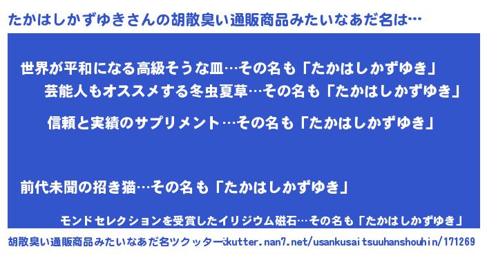 | 意味不明あだ名 | 『とにかく怪しいたかはしかずゆき』 |