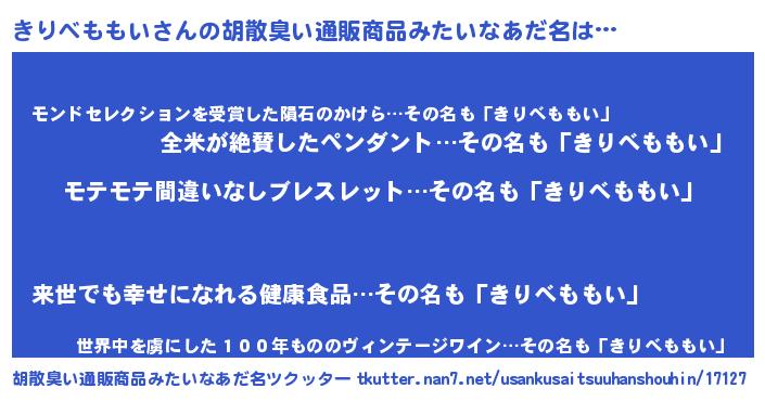 | 欧米人風あだ名 | 『マイケルきりべももい』 |