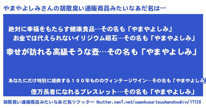 やまやよしみさんの胡散臭い通販商品みたいなあだ名をツクッター!