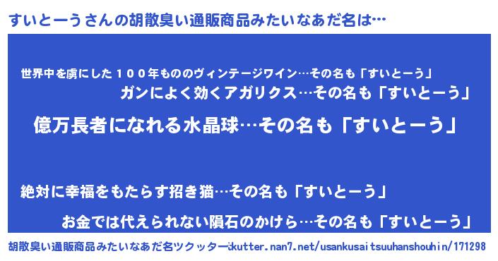 | 意味不明あだ名 | 『ペロリンすいとーう』『自称すいとーう』 |
