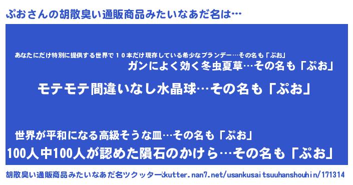 | 意味不明あだ名 | 『ペロリンぷお』『住所不定無職ぷお(91歳)』 |