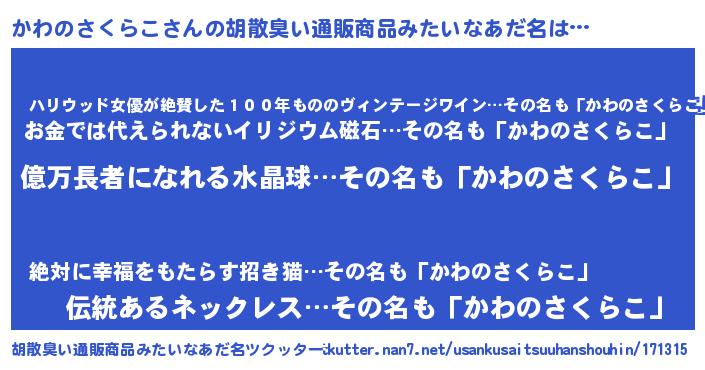 | 欧米人風あだ名 | 『マイケルかわのさくらこ』 |