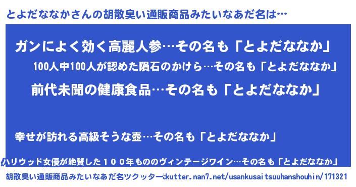 | 意味不明あだ名 | 『永久保存とよだななか』 |