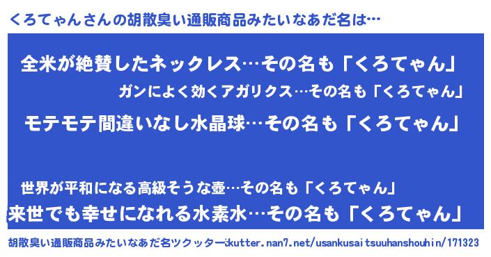 | 男性向けラノベタイトル風あだ名 | 『くろてゃんに滅ぼされるだけの簡単なお仕事です』 |