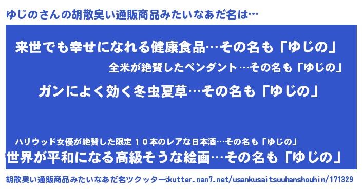 | 意味不明あだ名 | 『めかぶ科ゆじの属』『自称ゆじの』 |