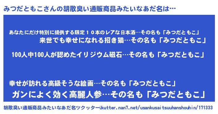 | ヘコむあだ名 | 『みつだともこ(笑)』『つくし』 |