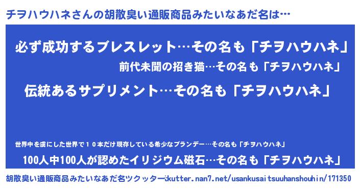 | 意味不明あだ名 | 『とにかく怪しいチヲハウハネ』 |