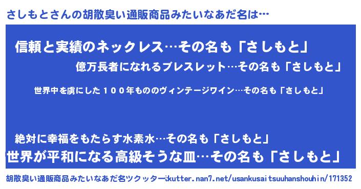 | ヘコむあだ名 | 『さし太郎』『牛乳』『さしふぇ~』 |