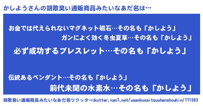 | 肩書あだ名 | 『かしよう社長』『かしよう助教授』 |