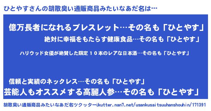 | ヘコむあだ名 | 『ひとにゅー』『ひとやす(小並感)』 |