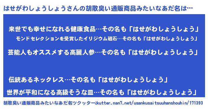 | 意味不明あだ名 | 『自称はせがわしょうしょう』 |