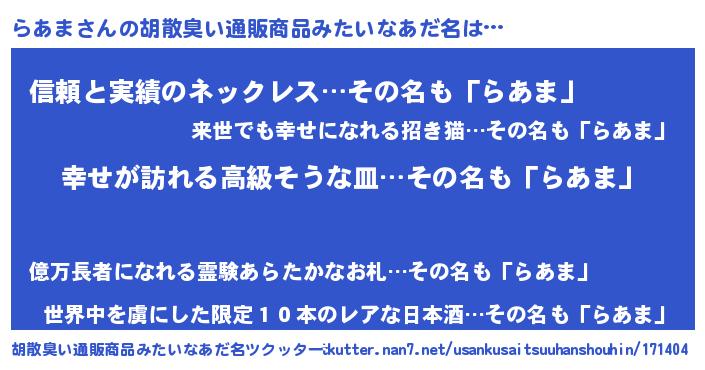 | 欧米人風あだ名 | 『らあま・ステッグマイヤー』 |