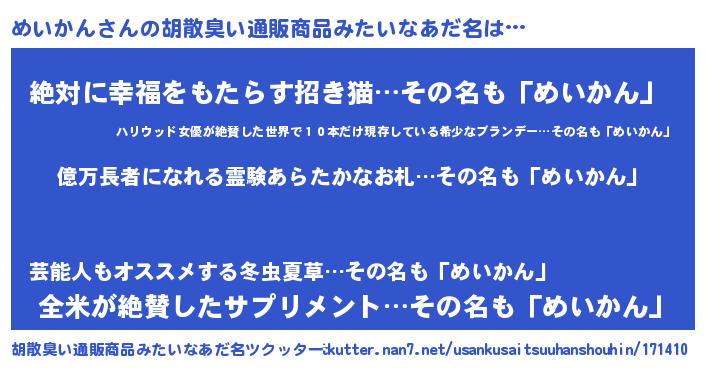 | ツイッター | めいかんさんのツイッターID『neet_kun』 |