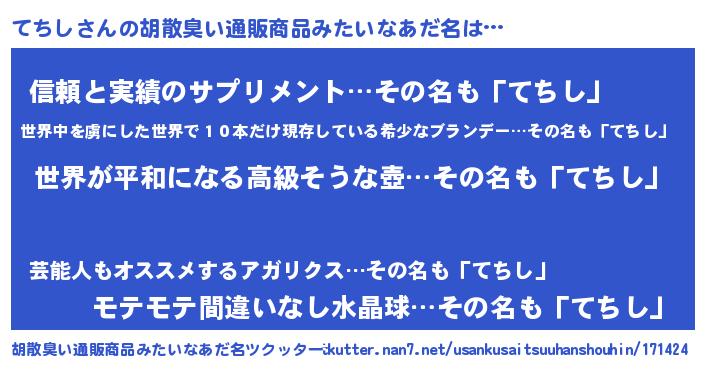 | 男性向けラノベタイトル風あだ名 | 『転生したらてちしだった件』 |
