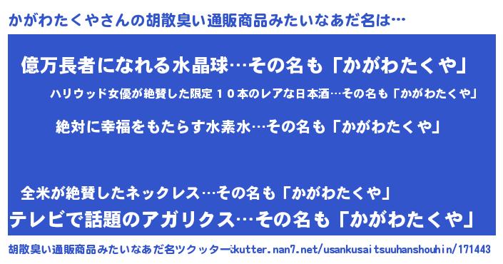 | 肩書あだ名 | 『かがわたくやプロデューサー』 |