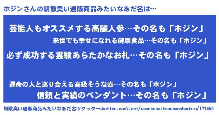 | 意味不明あだ名 | 『ペロリンホジン』『自称ホジン』 |