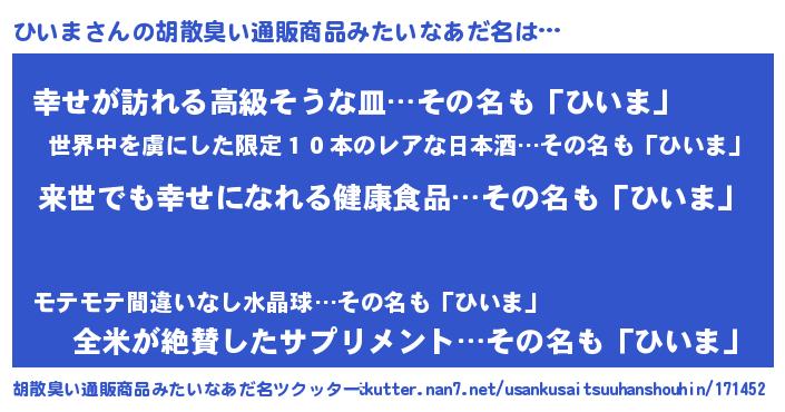 | ヘコむあだ名 | 『ひいま(苦笑)』『なまこ酢』 |