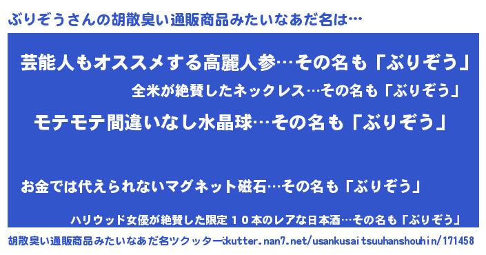 | 意味不明あだ名 | 『ペロリンぶりぞう』『自称ぶりぞう』 |