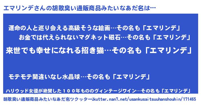 | ヘコむあだ名 | 『エマリンデ(小並感)』『レバニラ』 |