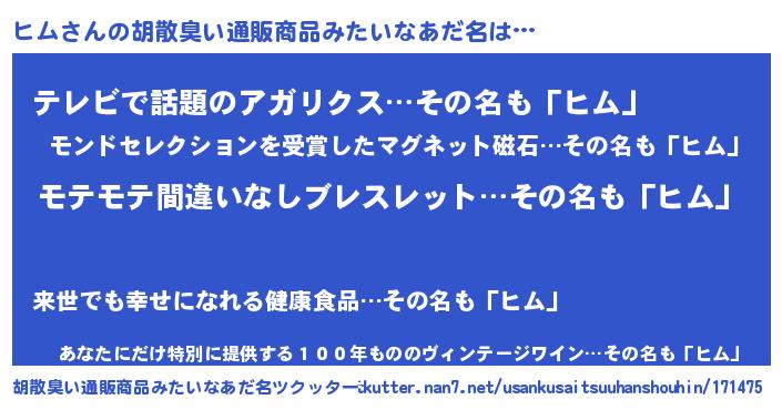 | ヘコむあだ名 | 『ヒムにー』『ヒム(小並感)』 |