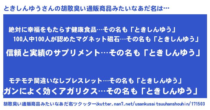| ヘコむあだ名 | 『ときを』『ときしんゆう(笑)』 |