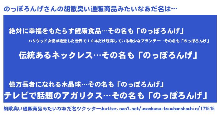 | 男性向けラノベタイトル風あだ名 | 『ダンジョンにのっぽろんげを求めるのは間違っているだろうか』 |